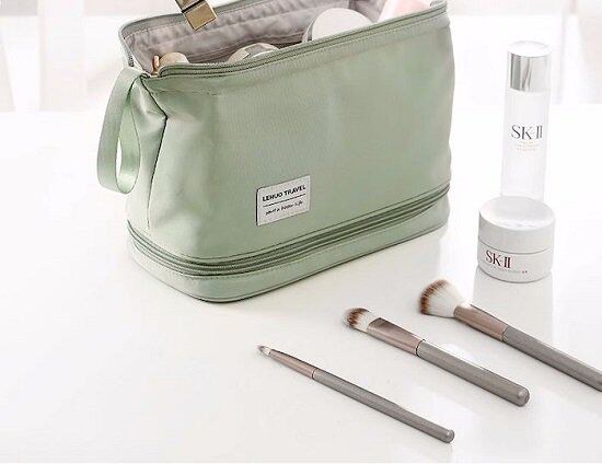 化粧ポーチ 防水 レディース 2段収納 小物入れ ポーチ 防水 大容量 撥水 メイクポーチスクエア トラベルポーチ 箱型 大容量 化粧ポーチ 便利 大き目 使いやすい 無地 持ち手つき 旅行グッズ