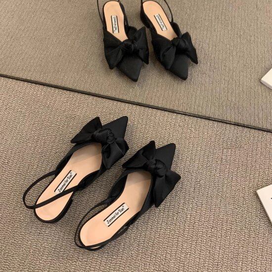 パンプス レディース リボン バックストラップ ドット柄 千鳥格子 ギンガムチェック ローヒール 3cmヒール サンダル ポインテッドトゥ フェイクレザー かわいい きれいめ ガーリー おしゃれ