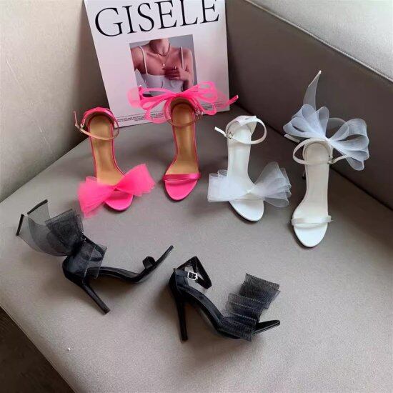 サンダル レディース アシンメトリー リボン アンクルストラップ ピンヒール ハイヒール 10.5cmヒール オープントゥ 非対称 セクシー カジュアル 華やか エレガント パーティー おしゃれ