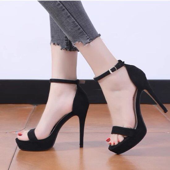 サンダル レディース アンクルストラップ スエードサンダル パンプス ハイヒール 12cmヒール フェイクレザー ストラップパンプス オープントゥ ピンヒール 脚長 美脚 セクシー おしゃれ