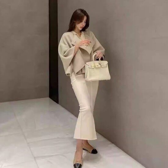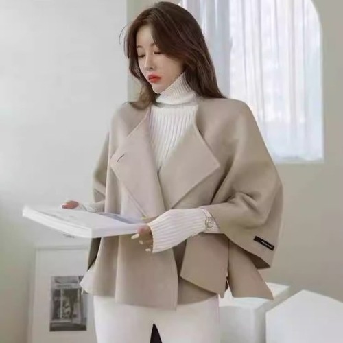 ショートコート レディース ケープ ウールコート Aライン ノーカラー 羽織り ライトアウター バットスリーブ ウール混 ジャケット マント 無地 きれいめ 上品 かわいい エレガント おしゃれ