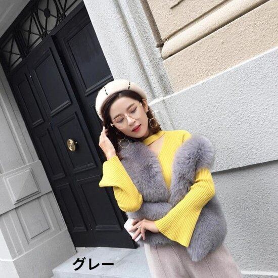 ファーベスト レディース Vネック ボリューム フェイクファー エコファー ノースリーブ ミディアム丈 ショート丈 無地 5color かわいい きれいめ エレガント おでかけ デート おしゃれ