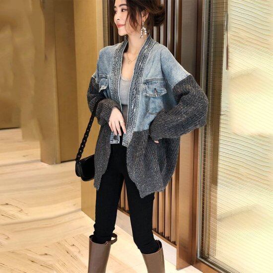 ジャケット レディース 大きいサイズ デニムジャケット レギュラー丈 ミディアム丈 もこもこ モコモコ 長袖 ボタン ポケット Vネック 無地 シンプル 通勤 デート 女子会 お出かけ 20代 秋冬