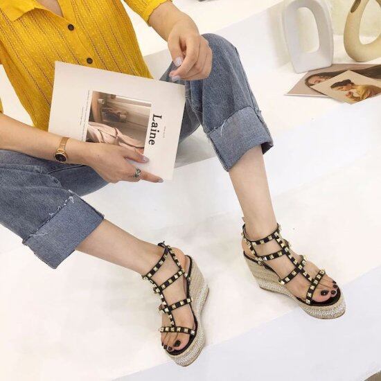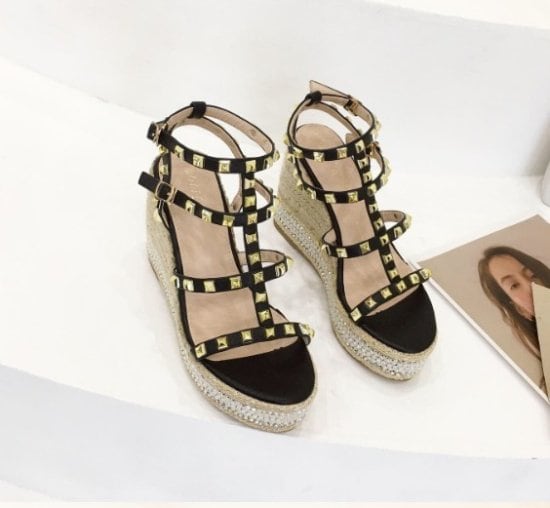 サンダル ウエッジソール ハイヒール 厚底 ブラック アプリコット 疲れない 厚底 歩きやすい ヒール サンダル ベルト ホールド 編み上げ 走れる サンダル 夏 美脚 ウエッジソール 厚底 サンダル