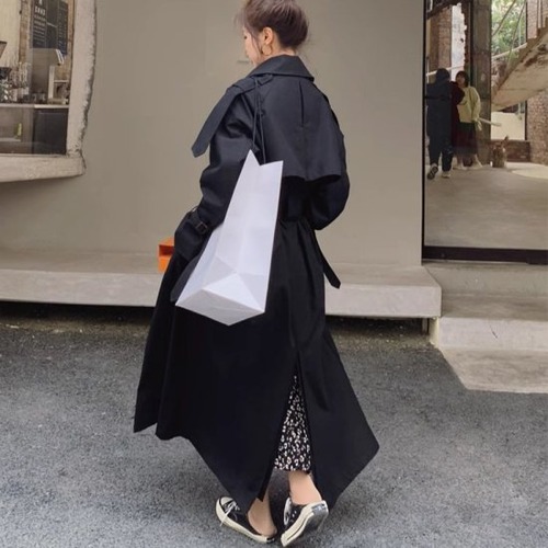 トレンチコート レディース ロングコート オーバーサイズ 長袖 ロング丈 マキシ丈 ベルト付き スーツ襟 ダブルブレスト 無地 ユニセックス ストリート きれいめ カジュアル トレンチ おしゃれ
