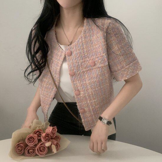 ジャケット チェック柄 大きいサイズ レディース レギュラー丈 ミディアム丈 2色 半袖 ボタン ポケット フリーサイズ 無地 シンプル 通勤 デート 女子会 お出かけ 休日 イベント 20代 夏