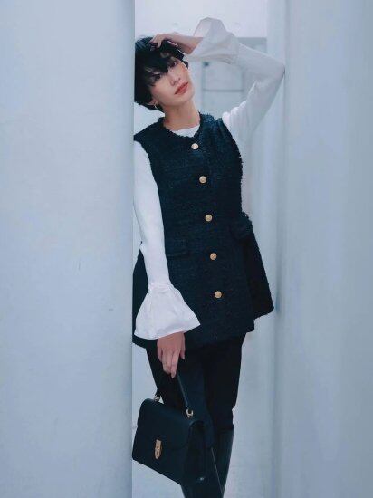 ジャケット ベスト 大きいサイズ レディース ノースリーブ レギュラー丈 ミディアム丈 ボタン ポケット ラウンドネック 2色 無地 シンプル 通勤 デート 女子会 お出かけ 休日 韓国 30代 夏
