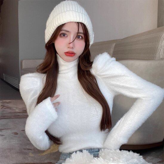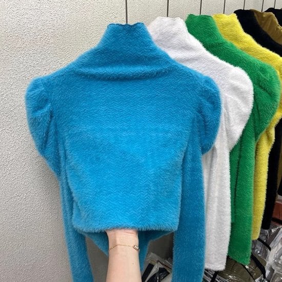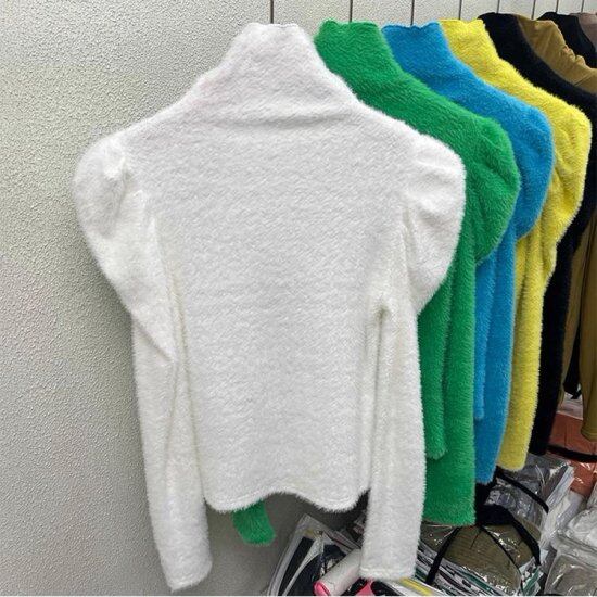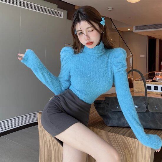 ニット レディース ハイネックセーター パフスリーブ タートルネック スリムフィット 長袖 無地 5color ビタミンカラー ボリューム袖 かわいい ガーリー カジュアル ニットセーター おしゃれ