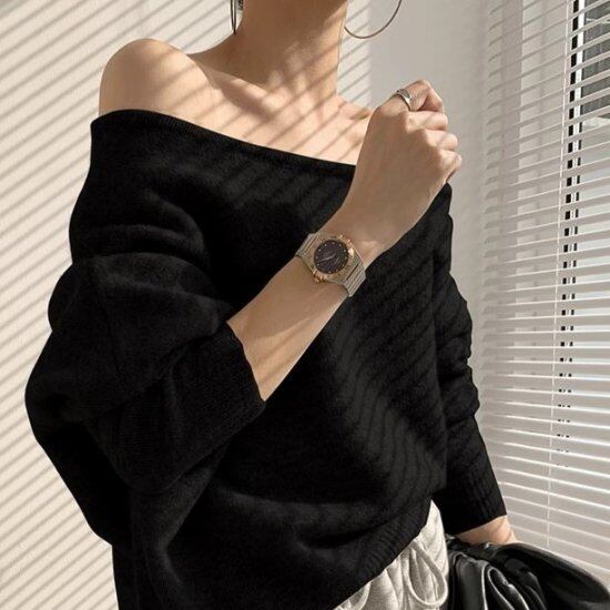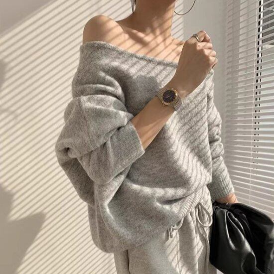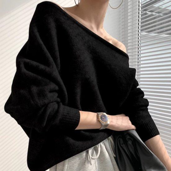 ニット レディース オフショルダー セーター ワンショルダー ドロップショルダー 長袖 ショート丈 モヘア ゆったり ルーズ リラックス オーバーサイズ きれいめ セクシー カジュアル おしゃれ