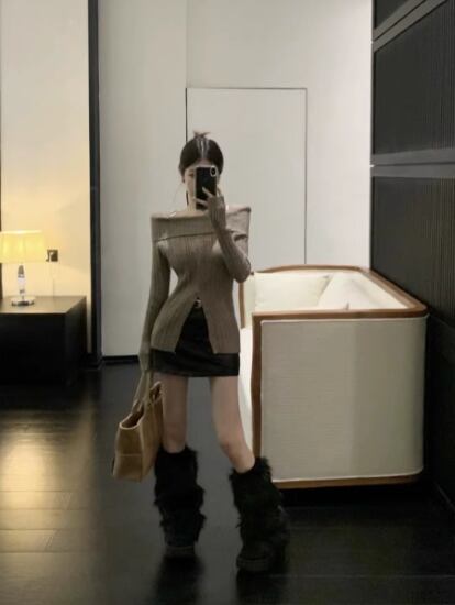 ニットセーター レディース トップス スクエアネック 長袖ニット セーター スリムフィット タイト プルオーバー 個性的 カジュアル お出かけ おしゃれ リブニット ボタン ファッション 女性 ニット