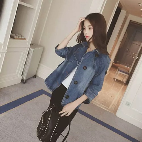 デニムジャケット レディース 大きいサイズ デニム ジャケット レギュラー丈 ミディアム丈 ブルー 青 七分丈 ボタン 無地 シンプル 通勤 デート 女子会 お出かけ 休日 韓国 イベント 20代 秋