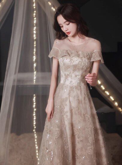 結婚式ドレス レディース オフショルダー レースワンピース ミモレ丈 ミディアム丈 ロング丈 パール ビーズ Aライン 華やか フェミニン きれいめ 演奏会 二次会 謝恩会 パーティー おしゃれ