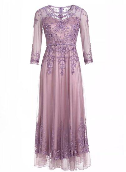 結婚式ドレス レディース レースワンピース ロングワンピース 七分袖 レース刺繍 ラウンドネック Aライン フェミニン きれいめ 上品 エレガント 演奏会 二次会 謝恩会 パーティードレ