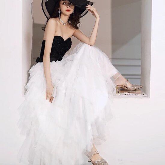演奏会ドレス レディース ベアトップ バイカラー ノースリーブ レーススカート ロングドレス チューブトップ ロング丈 マキシ丈 エレガント 結婚式 二次会 披露宴 パーティー イブニングドレス