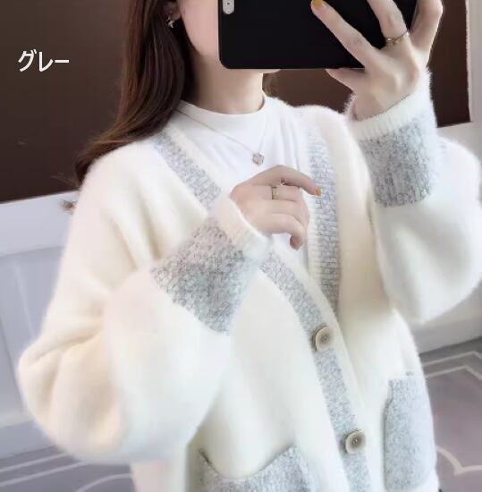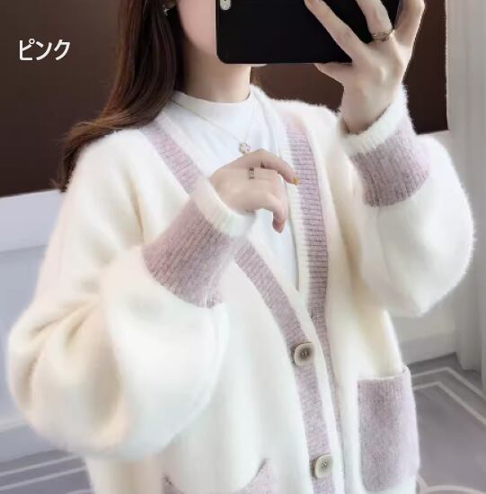 ニットカーディガン レディース カーディガン 羽織 ふわふわ 長袖 厚手 可愛い キュート ポケット フロントボタン Vネック ニット セーター トップス カジュアル お出かけ おしゃれ ファッション
