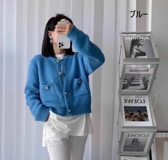 ニットカーディガン レディース カーディガン 羽織 ラウンドネック 長袖 ショート丈 フロントボタン ニット セーター ポケット カジュアル お出かけ おしゃれ ウール 秋冬 ファッション 女性
