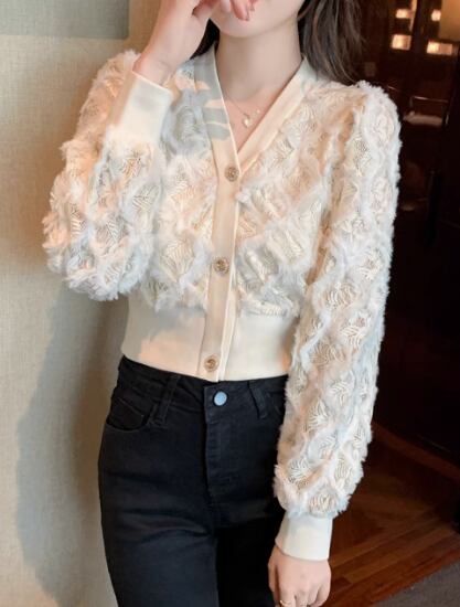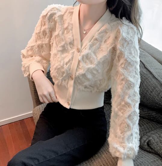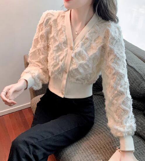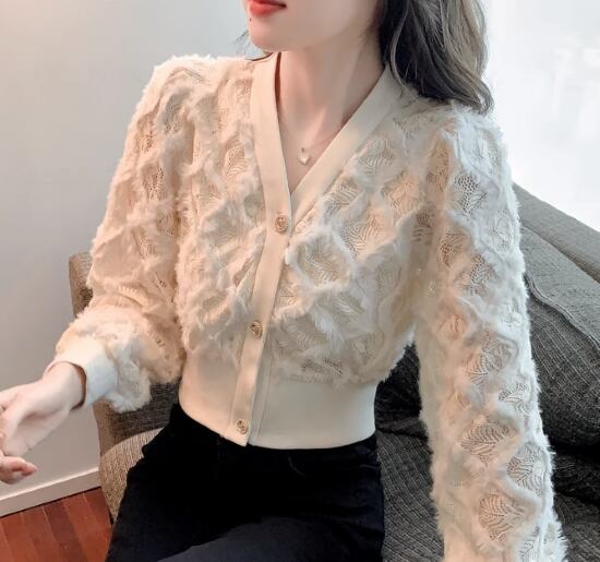 ニットトップス レディース トップス ニットカーディガン 羽織 カーディガン Vネック フロントボタン ふわふわ 立体的 カジュアル お出かけ おしゃれ きれいめ エレガント 長袖 ショート丈 女性