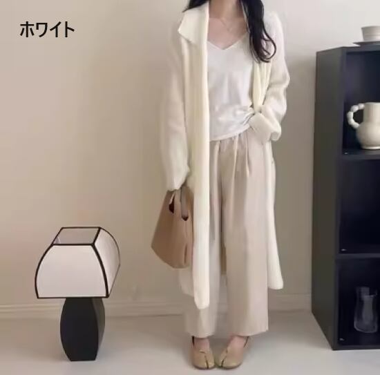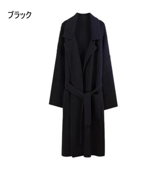 ニットカーディガン レディース 羽織 アウター コーディガン ロングカーディガン リブニット 襟あり ポケット ウエストリボン シンプル 無地 カジュアル お出かけ おしゃれ 長袖 ゆったり ルーズ