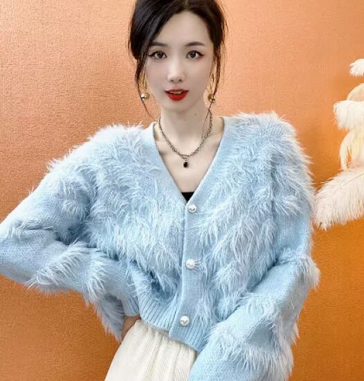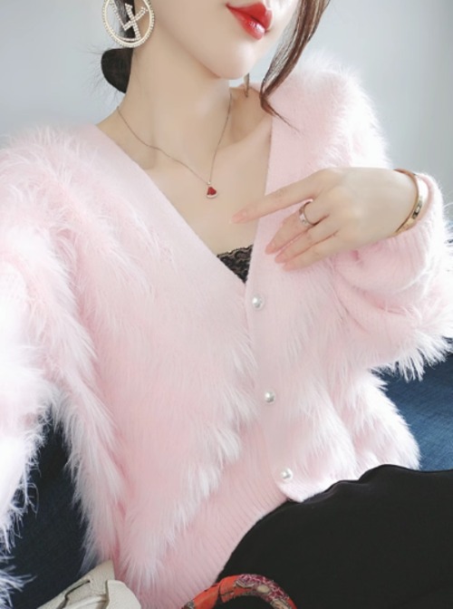 ニットカーディガン レディース カーディガン ふわふわ モヘア ファー Vネック 柔らかい ソフト パールボタン Vネック 長袖 パステルカラー カジュアル お出かけ おしゃれ フェミニン 女性
