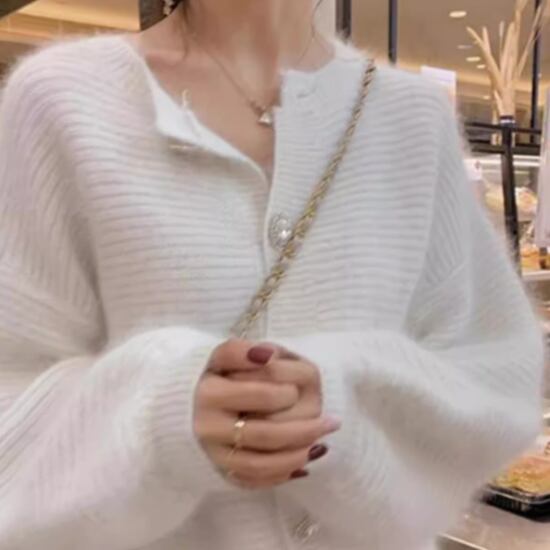 ニットカーディガン レディース カーディガン 羽織 モヘア ふわふわ シャギーニット 長袖 ボリューム袖 ラウンドネック 長袖 フロントボタン ゆったり ニット セーター カジュアル お出かけ 女性