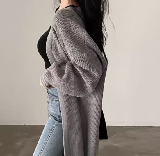 ニットカーディガン レディース カーディガン ロングカーディガン 羽織 アウター ボリューム袖 シンプル 無地 リブニット ゆったり ルーズ ロング丈 カジュアル お出かけ おしゃれ 大きいサイズ