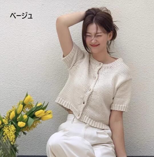 ニットカーディガン レディース カーディガン 半袖 サマーセーター ニット トップス 羽織 ラウンドネック フロントボタン シンプル 無地 ショート丈 ハート型ボタン キュート 可愛い カジュアル