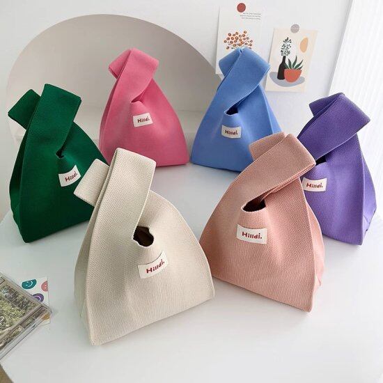 ニットバッグ レディース ミニバッグ エコバッグ 小さい サブバッグ 巾着 トートバッグ カラフル ビビット パステルカラー 無地 かわいい ガーリー ユニセックス カジュアル ニット おしゃれ