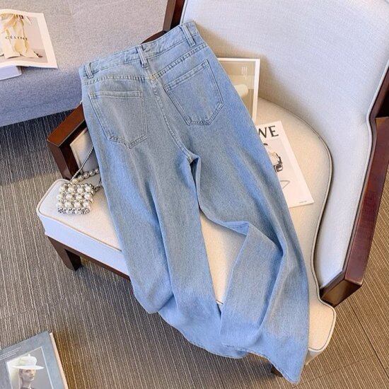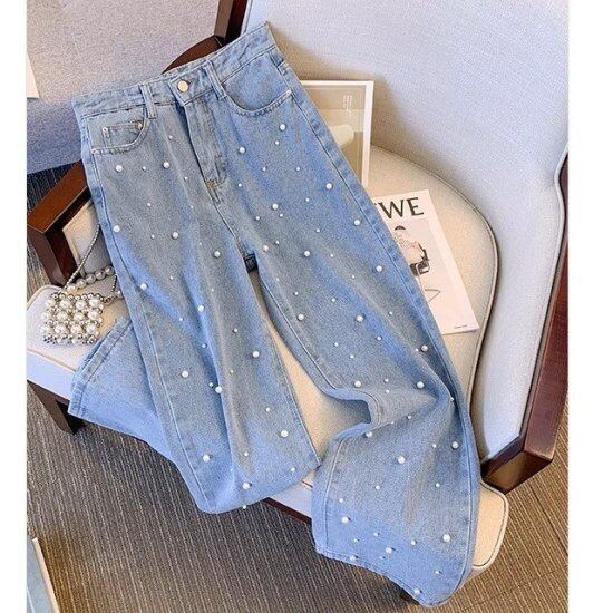パンツ レディース デニム ジーンズ ワイド パール付き ストレート ハイウエスト ゆったり ウォッシュ ワイドデニム ストレートデニム かわいい ガーリー カジュアル ストリート おしゃれ