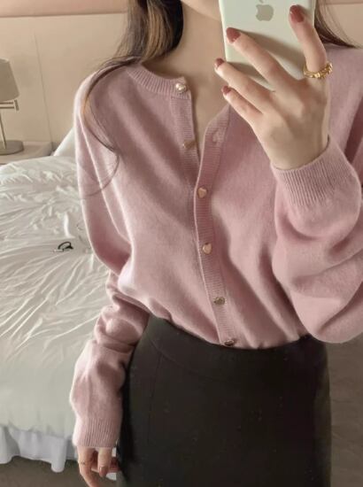 ニットカーディガン レディース カーディガン 羽織 長袖 ニット セーター トップス ハート型ボタン ラウンドネック シンプル ベーシック 定番 カジュアル お出かけ おしゃれ きれいめ エレガント