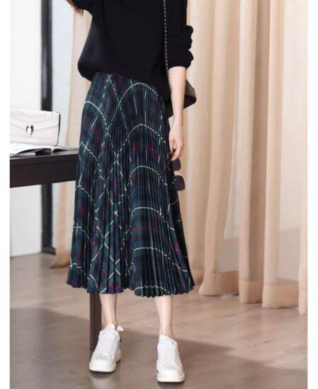 プリーツスカート レディース チェック柄スカート ロングスカート Aライン チェック 細プリーツ レトロ クラシカル かわいい きれいめ カジュアル オフィス おでかけ デート お呼ばれ おしゃれ