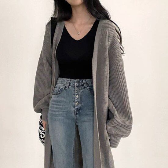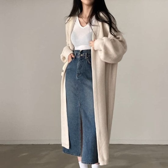 ニットカーディガン レディース ロングカーディガン 長袖 ボリューム袖 羽織り ロング丈 マキシ丈 ノーカラー 無地 シンプル モード シック きれいめ カジュアル オフィス おでかけ おしゃれ