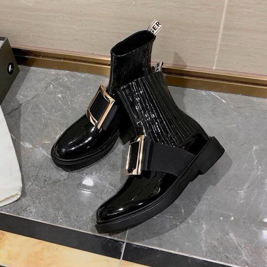 ショートブーツ レディース アンクルブーツ ラウンドトゥ スクエア バックル ラインストーン ビジュー 厚底 太ヒール ローヒール 4cmヒール 個性的 かわいい ガーリー ブーツ カジュアル