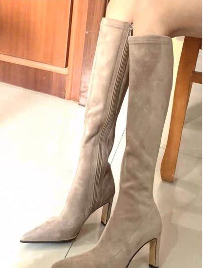 ロングブーツ レディース スエードブーツ ポインテッドトゥ フェイクレザー エコレザー ロング丈 ハイヒール 8.5cmヒール ストレッチ サイドファスナー きれいめ セクシー カジュアル おしゃれ