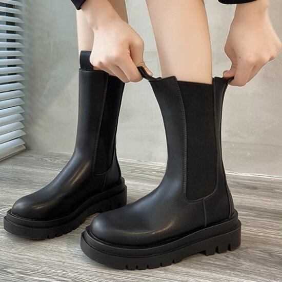 サイドゴアブーツ レディース ショートブーツ ハーフブーツ ラウンドトゥ フェイクレザー エコレザー ショート丈 ミディアム丈 厚底 5cmヒール ユニセックス カジュアル 脚長 ブーツ おしゃれ