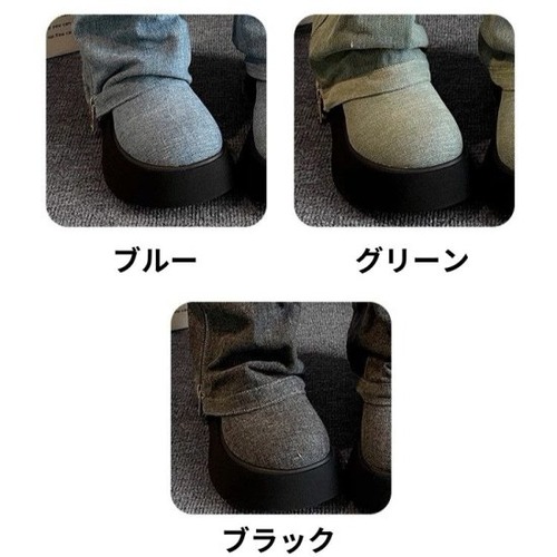 ロングブーツ レディース デニム 厚底ブーツ ベルト サイドファスナー ミドルヒール 5cmヒール レッグウォーマー風 ゆったり 個性的 レトロ ストリート カジュアル デニムブーツ おしゃれ