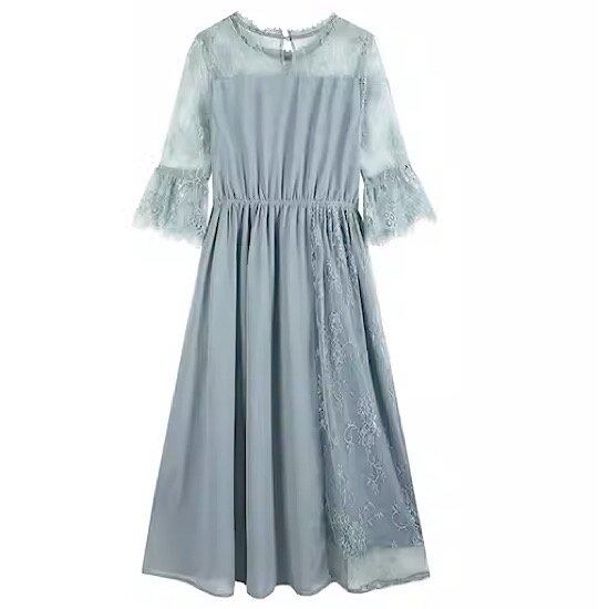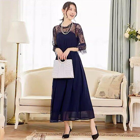 結婚式ドレス シースルー シフォントランペットスリーブ ラウンドネック ロング丈 発表会 演奏会 レディース 結婚式 ステージ衣装 エレガント ウエディングドレス カラードレス イブニングドレス