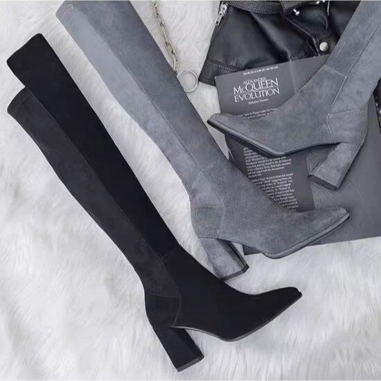 ロングブーツ レディース ニーハイブーツ スエードブーツ ストレッチ ひざ上 太ヒール チャンキーヒール 8cmヒール ポインテッドトゥ スリム 3color きれいめ カジュアル おしゃれ