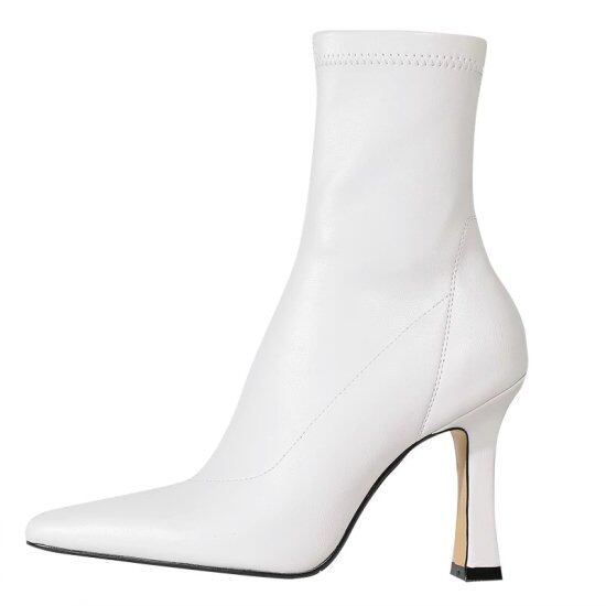 ショートブーツ レディース ストレッチブーツ アンクルブーツ ポインテッドトゥ フェイクレザー エコレザー ハイヒール 7cmヒール 細ヒール スリム クラシカル きれいめ エレガント おしゃれ
