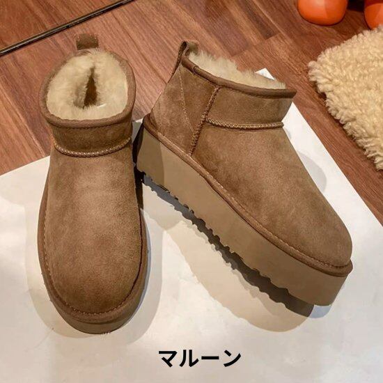 ショートブーツ レディース ムートン調 アンクルブーツ ボア スエード プラットフォーム フラット ローヒール 4cmヒール スノーブーツ かわいい カジュアル あたたか 防寒 アウトドア おしゃれ