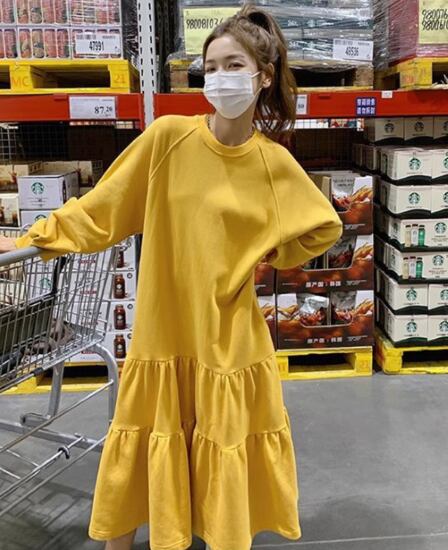 ロングワンピース レディース ワンピース ティアードワンピース ラウンドネック 長袖 ゆったり 体型カバー 大きいサイズ カジュアル お出かけ おしゃれ シンプル 無地 プルオーバー 女性 春秋