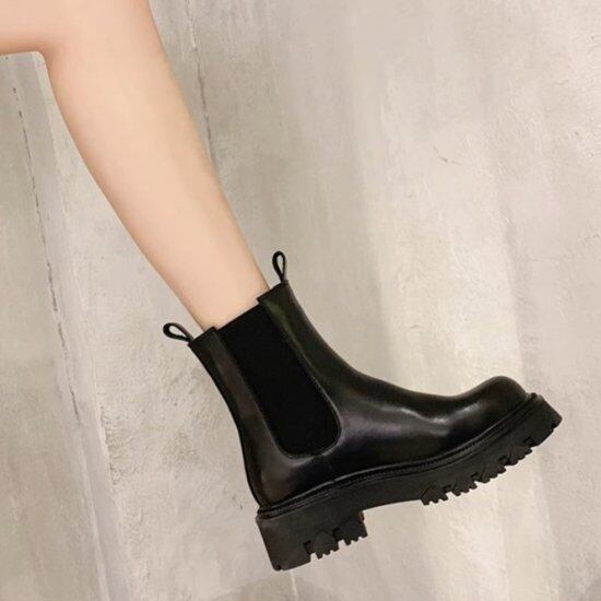 ショートブーツ レディース サイドゴアブーツ 厚底ブーツ フェイクレザー プラットフォーム 太ヒール ミドルヒール 5cmヒール カジュアル 歩きやすい ブーツ ショート丈 脚長 美脚 おしゃれ