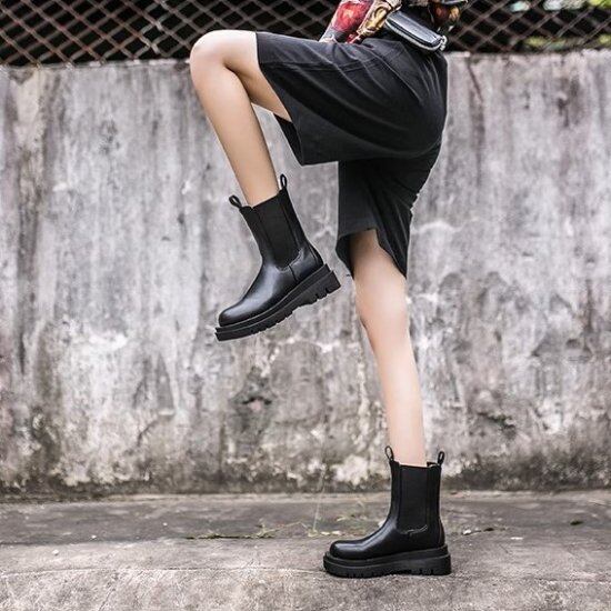 ショートブーツ レディース ハーフブーツ サイドゴアブーツ ラウンドトゥ フェイクレザー エコレザー 選べる ミディアム丈 チェルシーブーツ 厚底ブーツ 太ヒール 5cmヒール カジュアル おしゃれ
