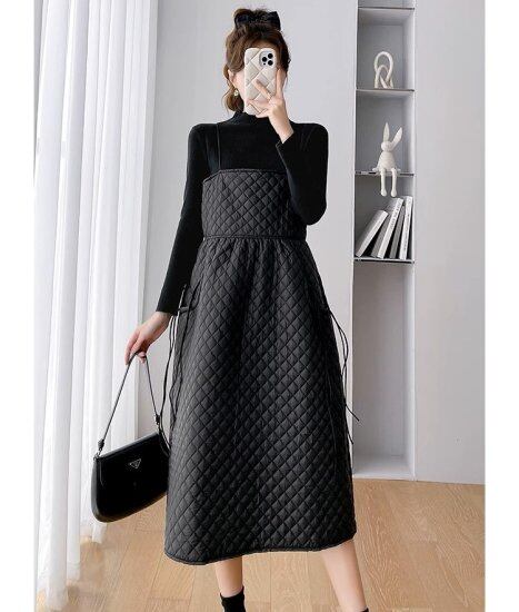 ワンピース レディース ジャンパースカート キルティング Aライン ボリューム サスペンダースカート キャミソールワンピース ハイウエスト ゆったり かわいい カジュアル マタニティ おしゃれ