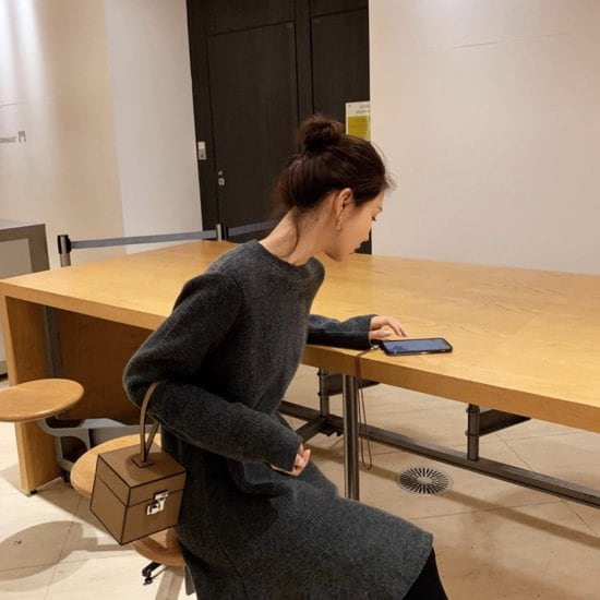 ニットワンピース レディース フリルスカート ラウンドネック 長袖 ミディアム丈 ひざ丈 ひざ上 カシミヤ混 フリル裾 レトロ かわいい きれいめ カジュアル おでかけ お呼ばれ デート おしゃれ