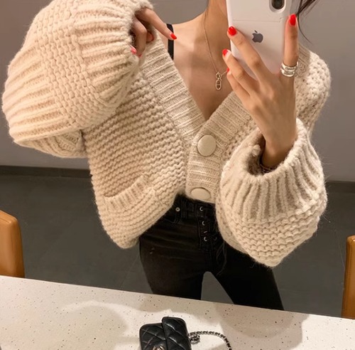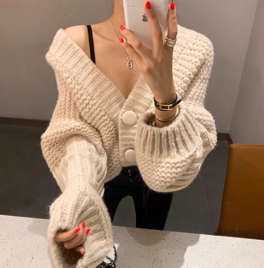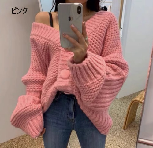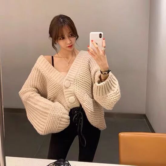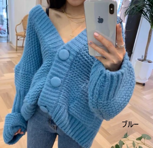 カーディガン レディース 無地 ニット アウター シンプル カジュアル ゆったり 大人 可愛い 前開き ボタン Vネック ショート丈 羽織り 長袖 秋冬 オーバーサイズ