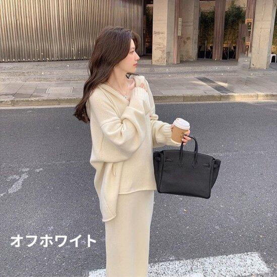 セットアップ レディース ニット 上下セット ニットパーカー フード付き ニット タイトスカート ロングスカート ミモレ丈 2color ニットアップ 2点セット きれいめ カジュアル おしゃれ