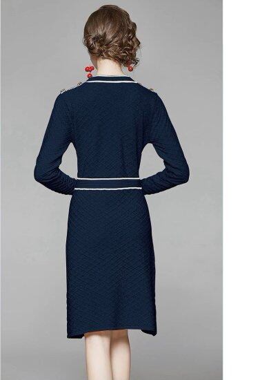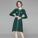 ニットワンピース レディース パイピング Aラインワンピース 長袖 ラウンドネック ボタン ミモレ丈 ひざ丈 スリム バイカラー 配色 3color レトロ クラシカル きれいめ 上品 おしゃれ