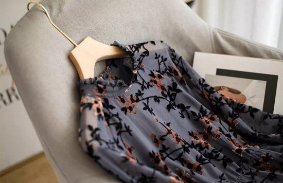 ワンピース レディース 花柄ワンピース 長袖 シースルー シアーワンピース 透け感 ハイネック Aライン レトロ クラシカル きれいめ かわいい ガーリー おでかけ お呼ばれ デート おしゃれ