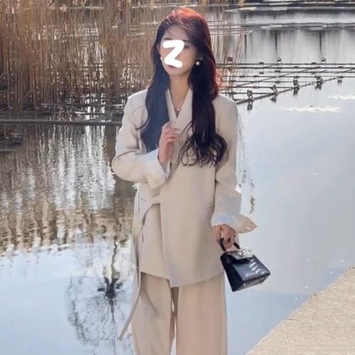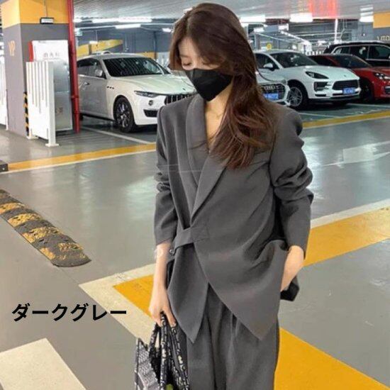 セットアップ レディース パンツスーツ 長袖 ジャケット テーラードジャケット Vネック カシュクール ワイドパンツ ゆったり 個性的 4color モード きれいめカジュアル 上下セット おしゃれ