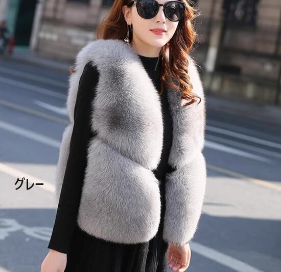 フェイクファーベスト レディース アウター 羽織 ベスト ノースリーブ ふわふわ もこもこ ショート丈 カジュアル お出かけ おしゃれ きれいめ シンプル 無地 Vネック 秋冬 ファッション 女性